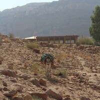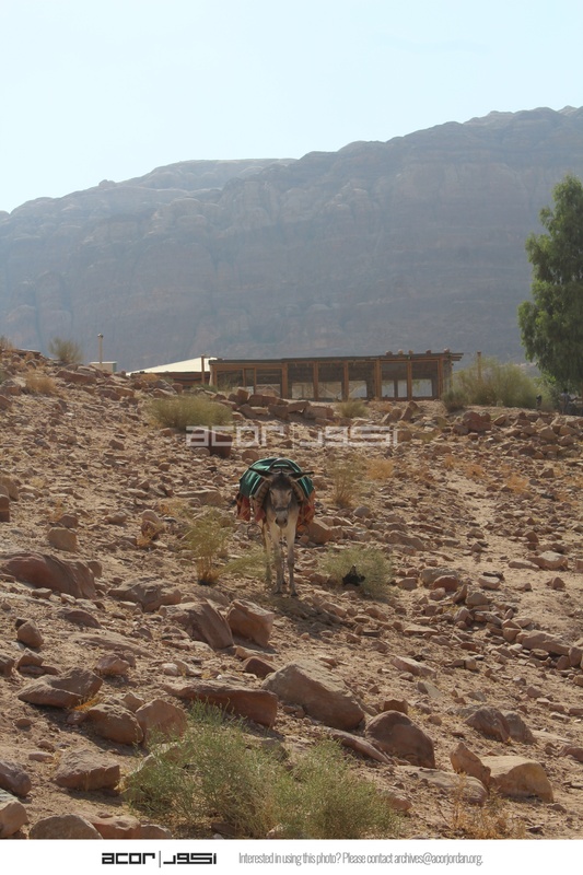 - Jordan. Petra, Temple of the Winged Lions, facing east toward restaurant, with donkey
