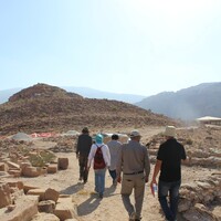 Jordan. Petra, Temple of the Winged Lions, north side of site facing east, USAID SCHEP team members