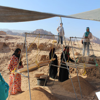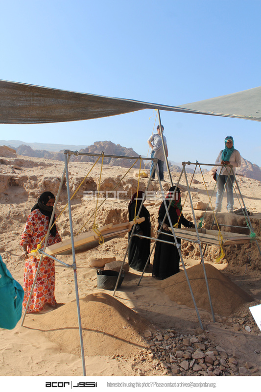 - Jordan. Petra, Temple of the Winged Lions, local team members sifting sand to fill sandbags which are used in conservation