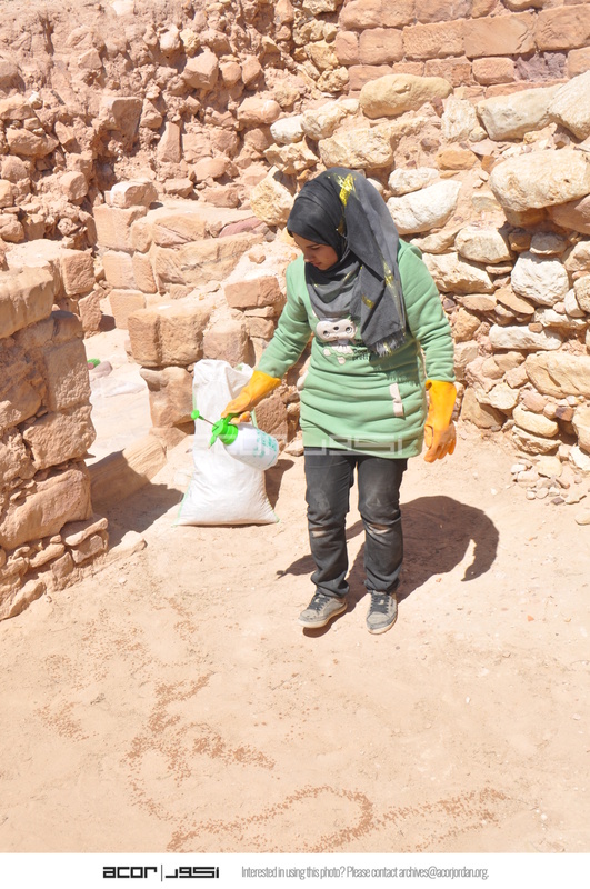 - Jordan. Petra, Temple of the Winged Lions, team member in conservation training, bottle likely contains a diluted herbicide that kills weeds