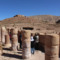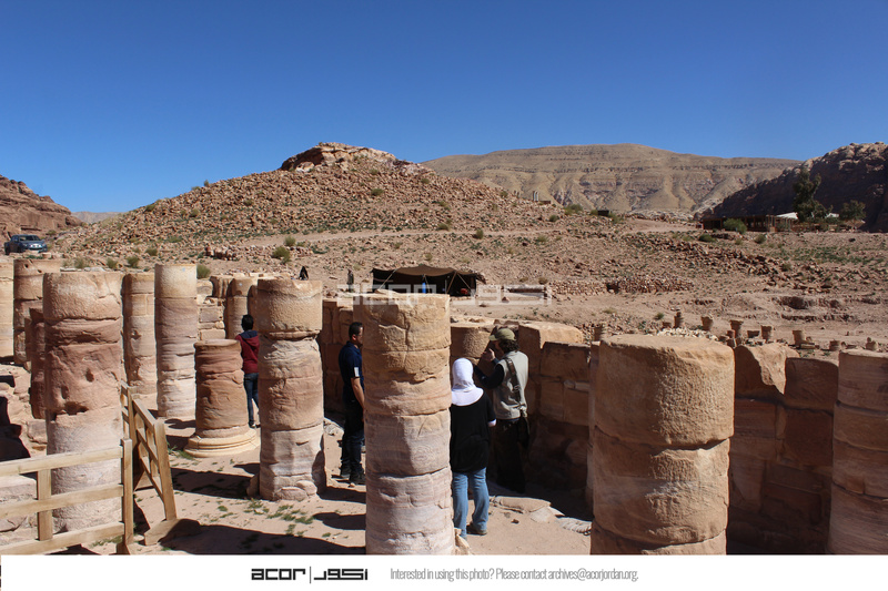 - Jordan. Petra, Temple of the Winged Lions, cella, columns in east aisle, Glenn Corbett, Nizar Al Adarbeh, and team member