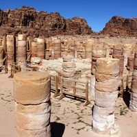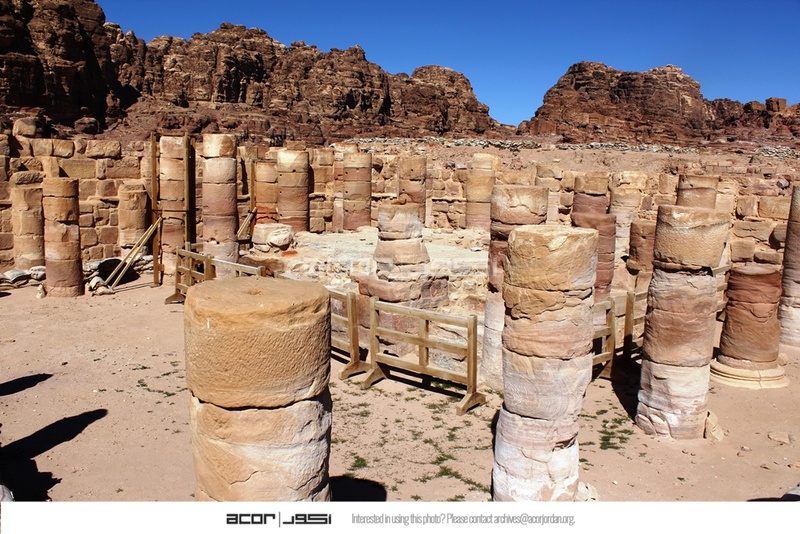 - Jordan. Petra, Temple of the Winged Lions, inside temple cella before conservation, facing northwest, columns appear white due to salt that seeps out of sandstone when it is exposed to moisture