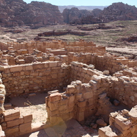 - Jordan. Petra, Temple of the Winged Lions, northern complex facing southeast, rooms adjacent to main temple