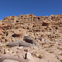- Jordan. Petra, Temple of the Winged Lions, east wall of TWL, south side of TWL, fallen columns in foreground