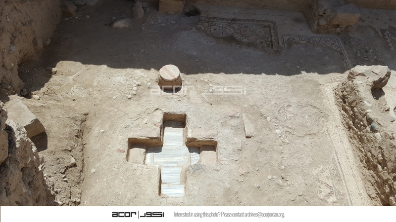 - Jordan. Ghawr as Safi, Byzantine church at Khirbet Sheik Isa. The cross on the floor is the bottom of the cruciform baptistry in the floor