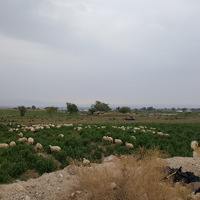 - Jordan. Ghawr as Safi, agricultural fields near Khirbet Sheik Isa, local residents, goats, dog