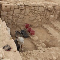 Jordan. Ghawr as Safi, excavations at Khirbet Sheik Isa. Dr. Alexandra Arriotti excavates Abbasid period remains in trench