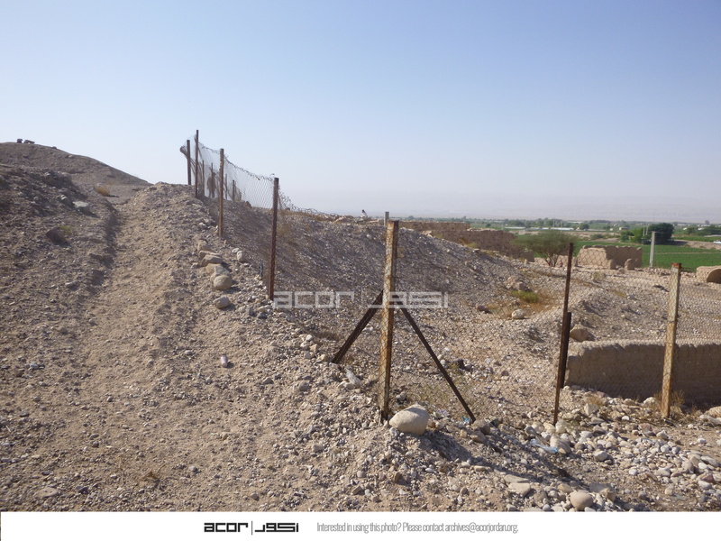 Jordan. Ghawr as Safi, fence, excavation to divert water erosion above the sugar factory (Masna’ as-Sukkar) archaeological site