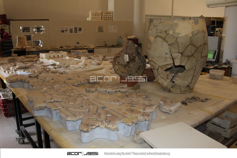 Jordan. Ghawr as Safi, Museum at the Lowest Place on Earth (MuLPE), conservation lab which shows mosaic pavements from Lot's Church and Islamic-period pots
