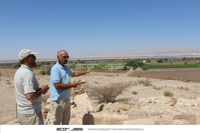 Jordan. Ghawr as Safi, Konstantinos Politis with Jehad Haron at sugar factory (Masna’ as-Sukkar) archaeological site