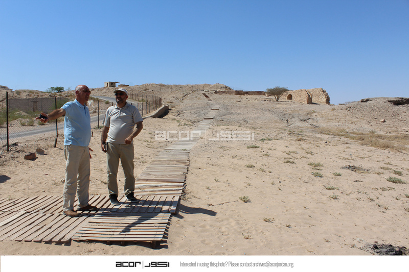 Jordan. Ghawr as Safi, Konstantinos Politis with Jehad Haron at sugar factory (Masna’ as-Sukkar) archaeological site