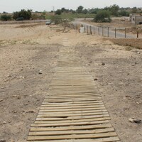Jordan. Ghawr as Safi, detail of damage to walkways at sugar factory (Masna’ as-Sukkar) archaeological site