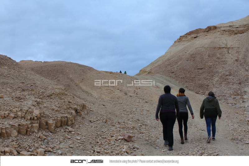 Jordan. Wadi Araba, Bir Madhkur, visitors walking on ad-Dlayi path, ancient incense route
