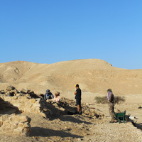 Jordan. Wadi Araba, Bir Madhkur, local workers conducting restoration work at Khirbat Bir Madhkur