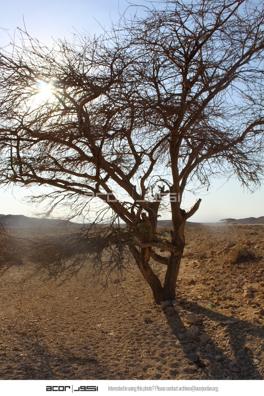 Jordan. Wadi Araba, Bir Madhkur, seyal tree alongside the ad-Dlayi path on the ancient incense route