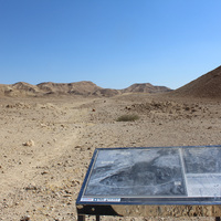 Jordan. Wadi Araba, Bir Madhkur, interpretive panel along the ad-Dlayi path on the ancient incense route