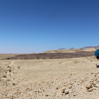 Jordan. Wadi Araba, Bir Madhkur, Maria Trogolo of USAID SCHEP walking on ad-Dlayi path, ancient incense route