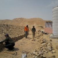 Jordan. Wadi Araba, Bir Madhkur, local workers conducting restoration work at Khirbat Bir Madhkur