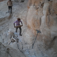 Jordan. Wadi Araba, Bir Madhkur, local workers doing restoration works on the ad-Dlayi path (ancient incense route) following erosion