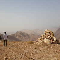 Jordan. Wadi Araba, Bir Madhkur, cairn on the ad-Dlayi path on the ancient incense route, running from Jabal Haroun (burial place of the Prophet Aaron) to Bir Madhkur