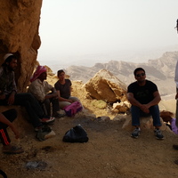 Jordan. Wadi Araba, Bir Madhkur, USAID SCHEP team member and local workers at the ad-Dlayi path on the ancient incense route, running from Jabal Haroun (burial place of the Prophet Aaron) to Bir Madhkur
