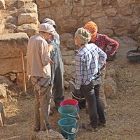 Jordan. Madaba, Madaba Archaeological Park West, 2016 team members excavating in Building 2 of the late 19th-century settlement, looking west