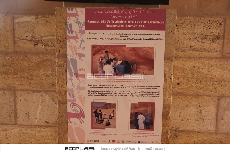 Jordan. Wadi Rum, poster to introduce the work done at Wadi Rum by The Community-Based Rock Art and Epigraphic Recording (CBRAER) team, Wadi Rum visitor center