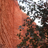 Jordan. Wadi Rum, Al Khazali mountain, cliff face, tree