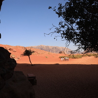 Jordan. Wadi Rum, Khazali canyon exit, trees, SCHEP site stewards