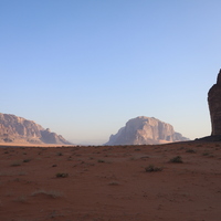 Jordan. Wadi Rum, general view of desert with mountains in background