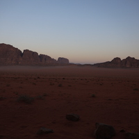 Jordan. Wadi Rum, general view of desert with mountains in background