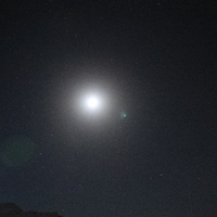 Jordan. Wadi Rum, moonlight with mountain to the side