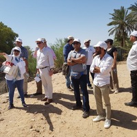Jordan. Aqaba (Ayla), Islam Sleim (left), site steward Mustafa Ajlouni (right), USAID team members checking on the progress of site development work at Ayla