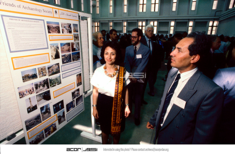 Jordan. Irbid, International Conference on the History and Archaeology of Jordan (ICHAJ) 5th conference, 12-17 April 1992. Front, from left: Muna Zaghloul, Former Head of Publications at the Department of Antiquities and Mohammed Najjar. Background, from