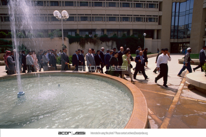 Jordan. Irbid, International Conference on the History and Archaeology of Jordan (ICHAJ) 5th conference, 12-17 April 1992, H.R.H. Prince Raad bin Zeid, Safwan Tell, H.R.H. Princess Basma Bint Talal, water fountain
