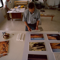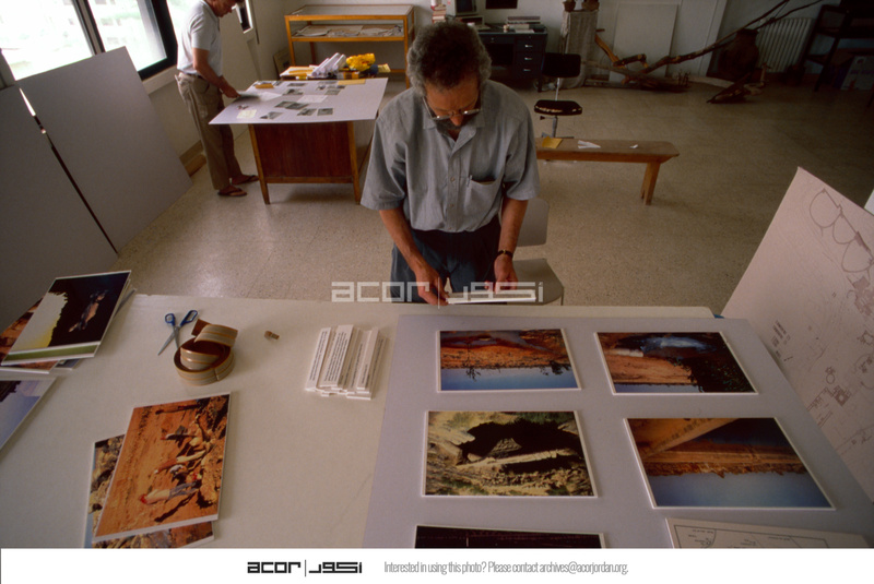 Jordan. ACOR Lower Library. Bert De Vries preparing exhibition materials for Irbid, International Conference on the History and Archaeology of Jordan (ICHAJ) 5th conference, 12-17 April 1992.