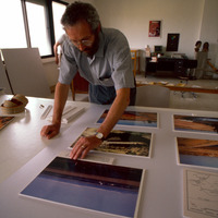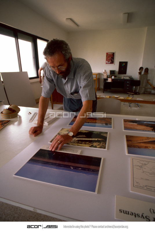 Jordan. ACOR Lower Library. Bert De Vries preparing exhibition materials for Irbid, International Conference on the History and Archaeology of Jordan (ICHAJ) 5th conference, 12-17 April 1992.