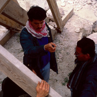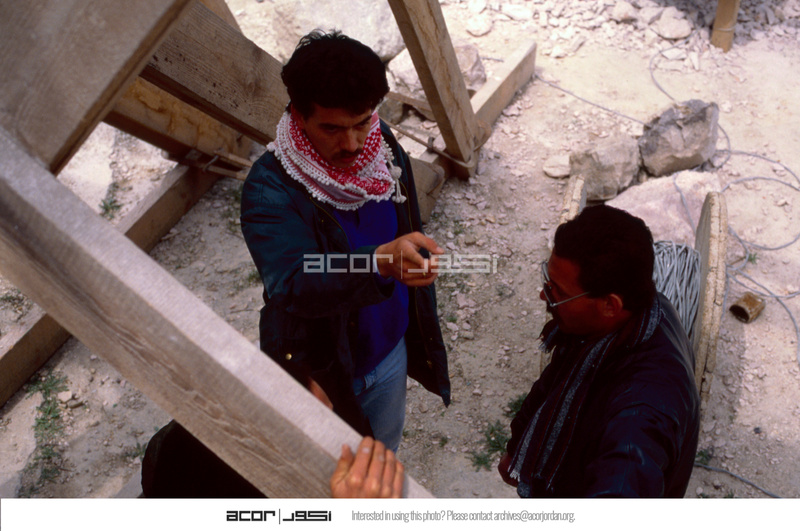 Jordan. Amman Citadel, Jabal Al Qala'a, during reconstruction of Temple of Hercules with site technical workers (?)