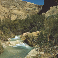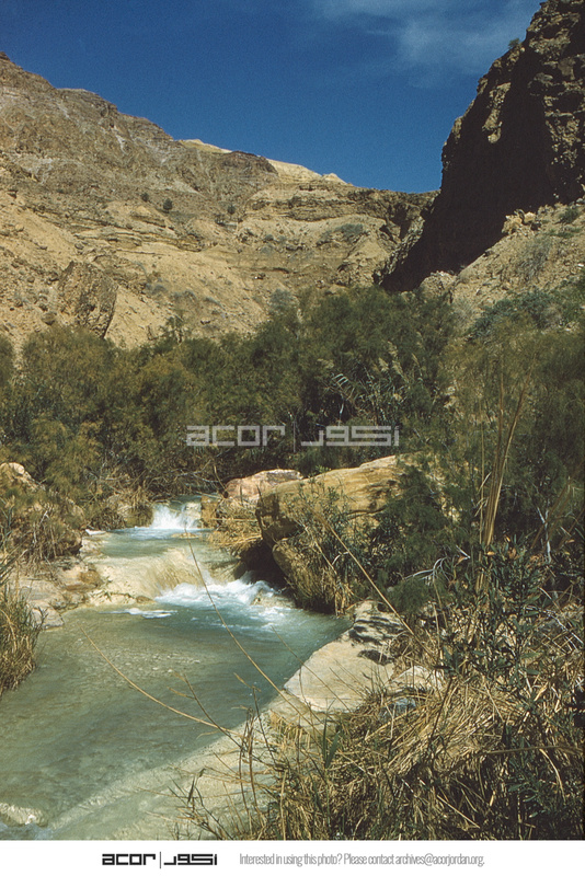Jordan. Wadi Zarqa Ma‘in, looking east. Near entrance to Dead Sea