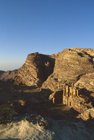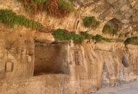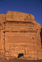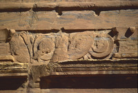 Petra, Mughar an-Nasara , detail of carving of Medusa head on Triclinium façade