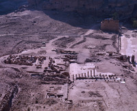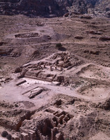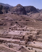 Petra basin from Jabal al-Khubtha to Qasr al-Bint, over mountains. to Wadi Araba