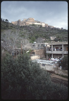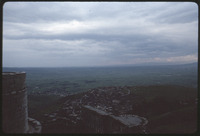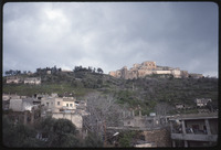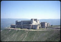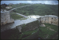 منظر طبيعي يظهر في مقدمته الأسوار والأبراج الجنوبية الشرقية من قلعة الحصن