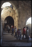 مجموعة زوار وسياح في أحد الممرات المقببة في قلعة الحصن