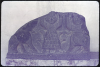 نقش بارز يصوّر إله الجبل ومرافقيه من عين دارة في متحف حلب الوطني