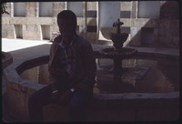 بربرا أ. بورتر تجلس على حافة نافورة الماء "البحرة" في بيت أجقباش