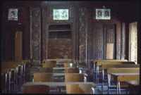 قاعة صفية يظهر فيها لافتة مكتوب عليها بالأرمني في بيت غزالة الواقع في حي الجديدة