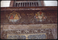 لوحات خشبية مرسومة عليها باقة زهور وصحن فاكهة وبيت شعر صوفي على واجهة بيت غزالة