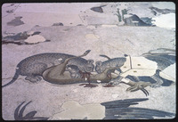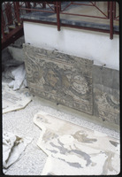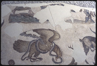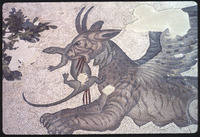 تفاصيل فسيفساء تصور كائن أسطوري يأكل حرباء