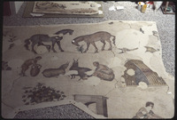 تفاصيل فسيفساء تصور أسدًا يهاجم فيلًا