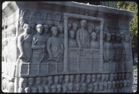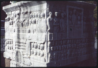 تفاصيل قاعدة مسلّة ثيودوسيوس تُظهِر الإمبراطور يقدّم أمجادًا